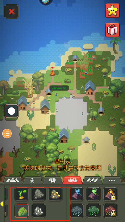 上帝模拟器2官方正版是2D像素风格,看起来非常简单,上手没有什么铺垫,也没太多的引导,直接面对随机生成的一个世界,这个世界有海洋,有陆地,偶尔还会有一些正在喷发的火山,似模像样,玩家可以用手机放大屏幕,展现地形地貌的细节,设计很不错。