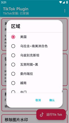 tiktok插件(tiktok plugin换区器)是一款适用于安卓手机系统、功能操作便捷的应用软件app,它凭借简单易上手的功能界面、定期更新新版本满足用户使用需求深受用户推崇。实现自由换区、设置默认刷视频区域、去除视频水印、gif水印等功能 。需要的用户快来下载体验吧!