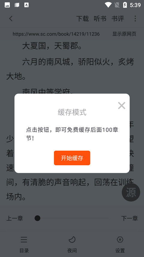 5、点击开始缓存即可进行小说/漫画的缓存和下载了!