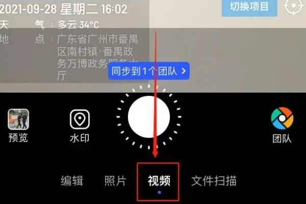 2、打开您手机上的水印相机,在应用的底部,您会看到一个小字标签写着“视频”,点击它相机就会切换到视频拍摄模式。