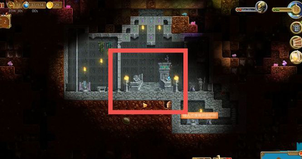 1、玩家需要向地下挖掘去找到一个被石头围起来的看起来四四方方一圈都是石头的地方,里面有一个不能被挖掉的石台,这个石台就是过关传送门的底座。