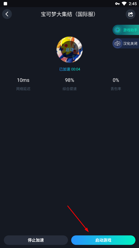 1、首先打开CC加速器,然后加速宝可梦大集结国际服,即Pokémon UNITE,选择加速线路;