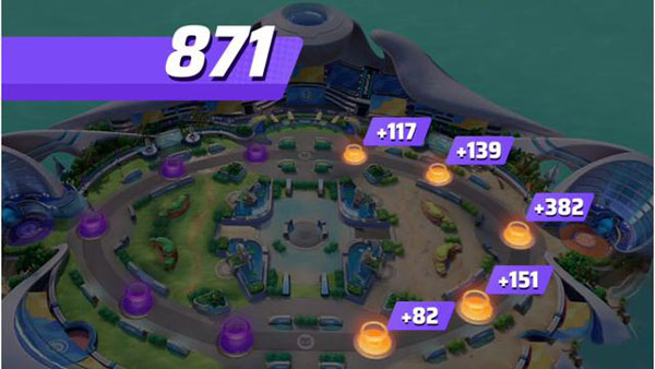 玩家可携带上限是50分,打倒对手后会掉落的金珠,大的5分,小小1分。双方都可以捡起;若携带分数被敌方击杀,会掉落一部分的分数;