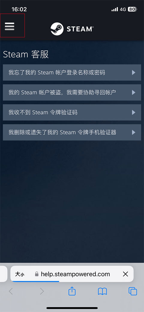 2、这时候会通过浏览器跳转到steamapp,点击左上角“三”按钮,