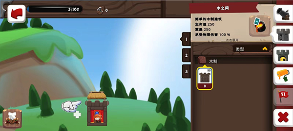 2、点击木制,选择一块合适的空地,点击建造木屋城堡。