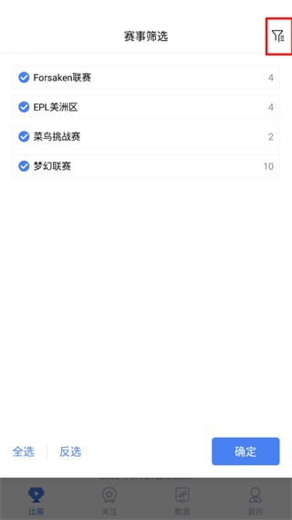 2、点击下图图标,可以进行赛事选择