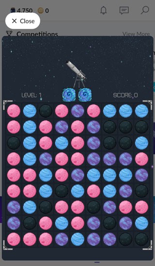 2、中间部分的小游戏,可以赚星尘,个人比较推荐2048和星球消消乐,消消乐一局如果失败了就是100,成功了就是300,这两个比较好赚。