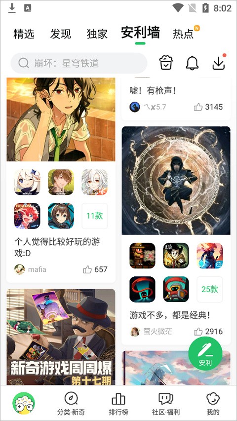 1、进入应用首页中点击顶部导航栏中【安利墙】,进入安利墙页面中点击好友发布的作品