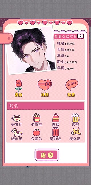 3、自由选择角色:玩家可以自由选择自己喜欢的角色,并与其角色进行情感交互。