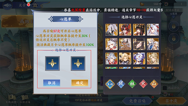 4、推荐买:完成150次灵召后可开启心愿单,每日可以从心愿单中获取两次心愿刃灵的概率提升,建议元宝余量丰厚的玩家每日可购买星晷令进行抽卡,优先把每日两个心愿刃灵召唤出来。