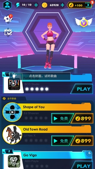 3、每次挑战玩家都会获得一定数量的游戏币,通过游戏币可以购买新的角色,解锁新的武器。想要获得更多游戏币,除了挑战歌曲曲目,还可以通过签到获得。