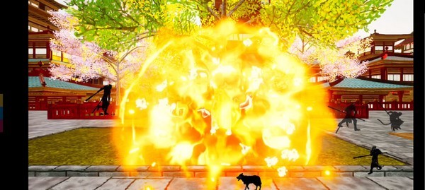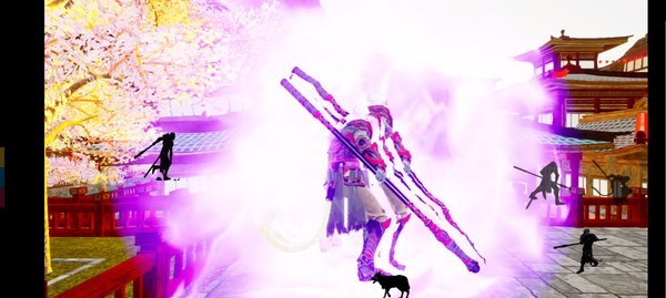 2、四个按钮,普攻、甩棍、跳跃、还有特效拉满的瞬移!化作一阵血色旋风~