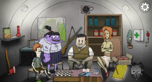 当60秒结束后,玩家带着所救的人员和物资成功来到地下室,游戏的画面就转变成了平面2D的视角,在这时的界面中玩家能够观察到自己所带的物质分别陈列在地下室的各个位置,屏幕右下角的笔记本将通过日记的方式描述着玩家所控制成员的状态以及发生的事件,随着人物状态的不同,饥饿、生病都会通过形象的人物作画表现出来,倒也挺有意思。