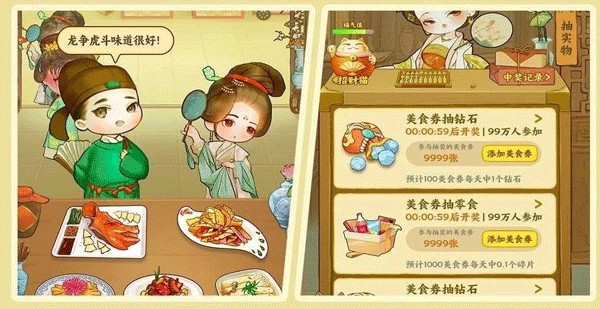 美食券可以用来抽钻石,也可以抽别的商品以及零食礼包。