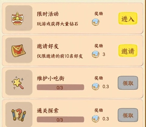 金币主要就是用来升摊位和繁荣度的,每天必玩的活动有以下: