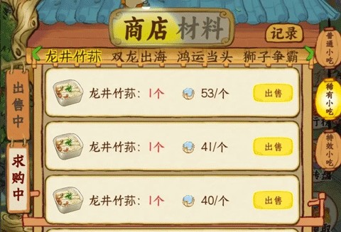 材料主要有两种用途,一个是合成特效小吃,另一个是合成稀有小吃。