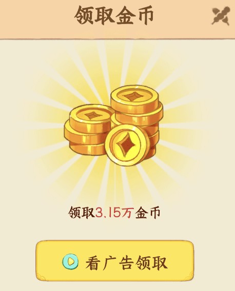 15分钟领一次,每天通过看广告可以领3次金币。