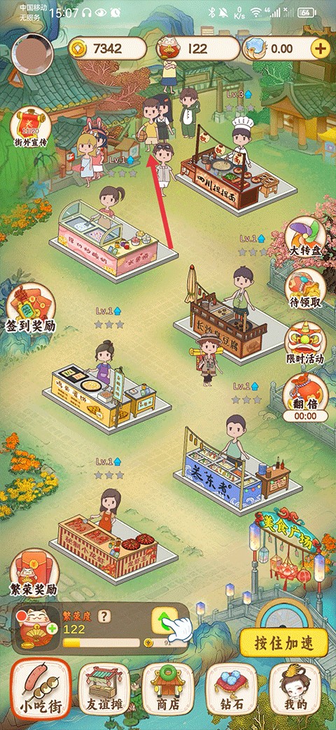 7、快速提升小吃街的等级,这样你就可以解锁更高级的菜谱,让更多的有钱人在这里吃饭。