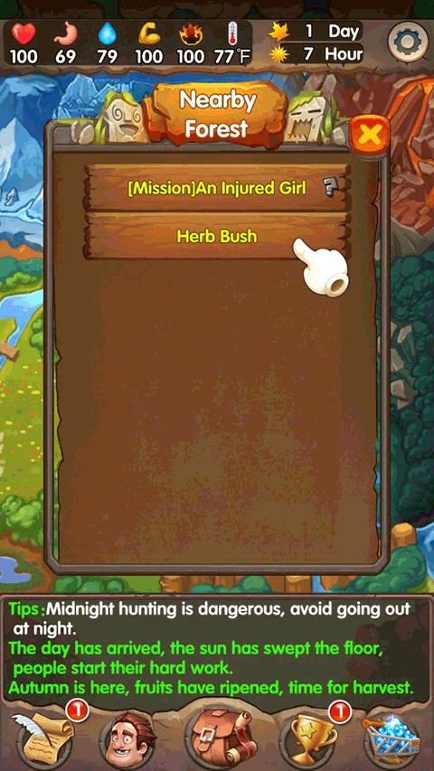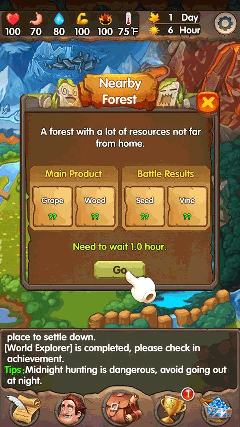 这个时候可以看见我们的营地后出现了一片丛林,我们点击它去一探究竟。