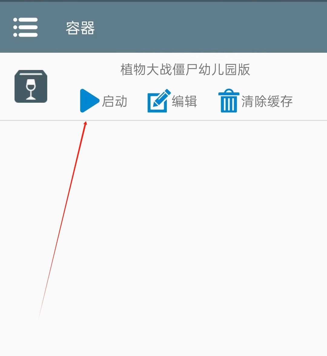 3、就可以看到一个植物大战僵尸幼儿园版手机版的容器已经创建好了,点击启动;