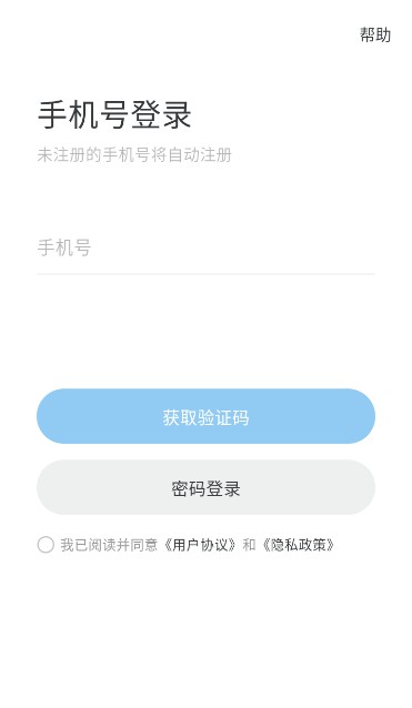 2、输入手机号进行登录,未注册的手机号会自动注册