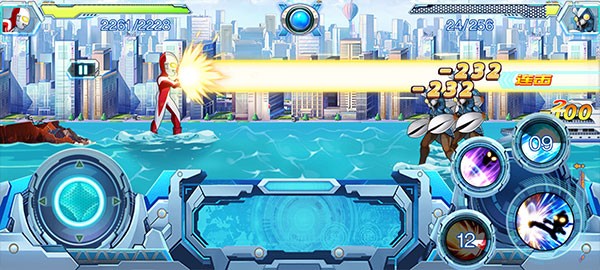 2、手动点击人物头像释放技能,简单的操作让每一个玩家们都可以成为一名真正的奥特曼那样战斗。