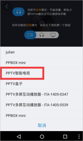 2、确保投屏设备(智能电视、电视盒子或下载了pp视频客户端的电脑)与手机连接的是同一个wifi