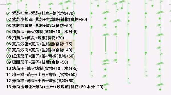 知道了这些植物的分布位置,你肯定想问这些植物有什么用呢?采集这四种植物均有概率掉落种子,种子可用于耕种再次收获。而采集掉落的食材可以用于烹饪。那么这四种植物的食材可以制作哪些新品料理呢?