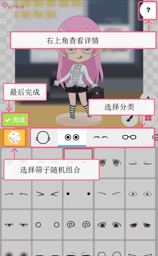 1、进入picrew me捏人软件正版中文版的服装制造商页面,选择分类组合喜爱的项目来创建图像。
