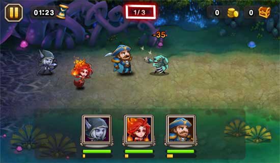 1、进入关卡好,首先要选择适合对付该关卡中敌人技能的英雄进入战斗!虽然目前我们只有3位英雄,但是随着故事的发展,将会有越来越多的英雄加入我们。