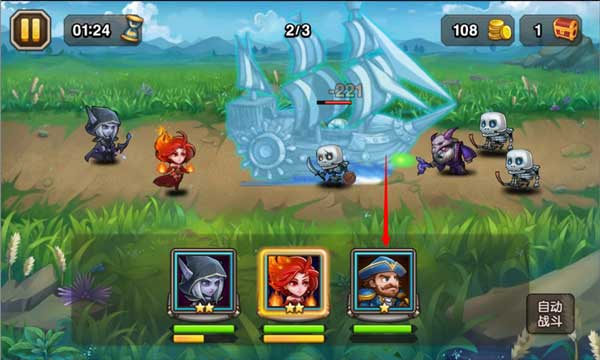 4、在战斗画面右下角点击“自动战斗”,英雄会在能量条蓄满时自动施放大招,节省了操作。