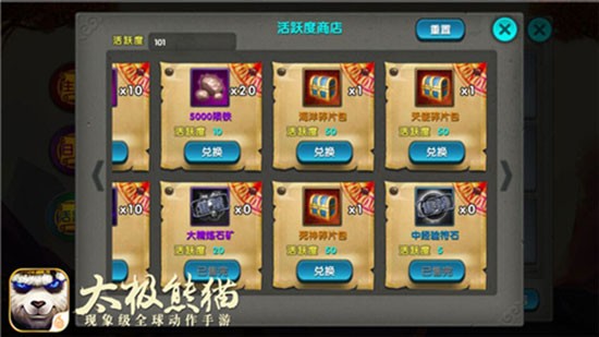 活跃度必换经验符文,精炼石,其他的看自己活跃度来决定。