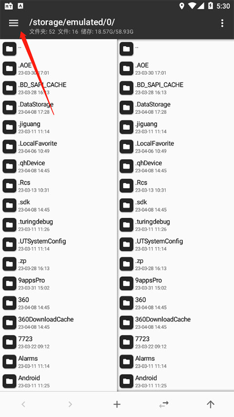 3、用户在侧拉栏中可以查看存储设备、FTP连接、书签、后台、工具,文件管理高效。