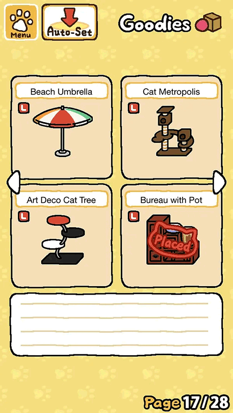 2、道具:道具有很多种,当然一开始时你会先买自己喜欢的道具。但其实每一只猫也有他自己偏爱的玩具,他的偏好会在每只猫咪的名片里有所体现。特别是特殊猫只能用某种玩具才能召唤出来。看着自己偏爱的猫咪们在不同的道具上玩耍,摆出不同的姿态就是这个游戏的乐趣所在。