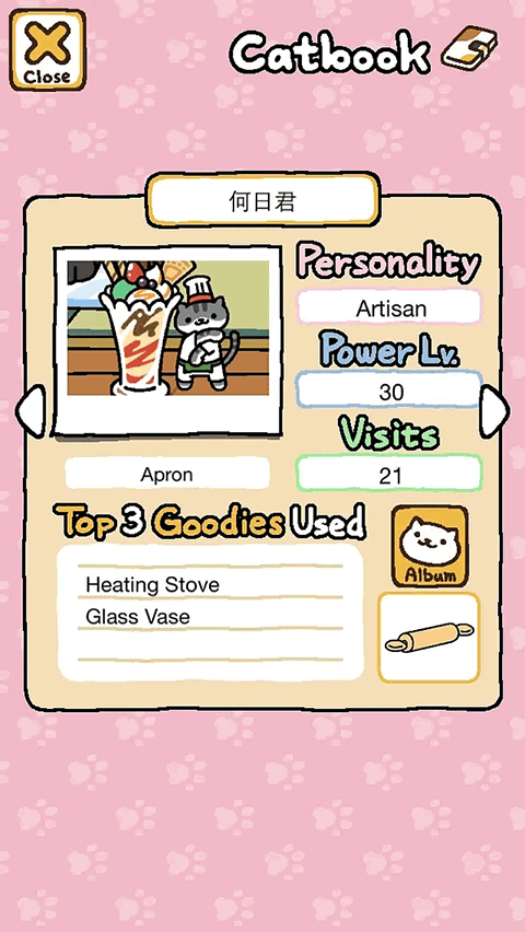 再下面的一部分是这只猫咪最喜欢的道具排行榜,旁边是相册入口与她已经给你的礼物。