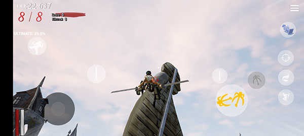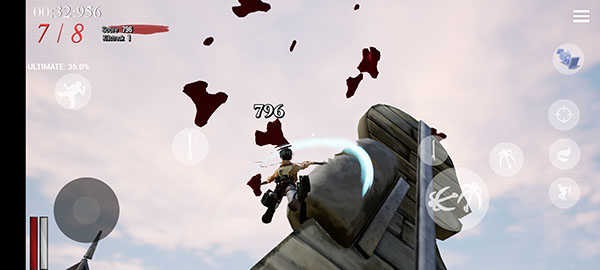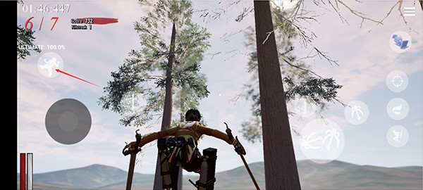 2、长按绳索就能不断的往那个方向飞行,飞到巨人的后颈位置。