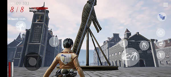 1、进入到游戏当中,我们将控制艾伦对巨人进行讨伐。