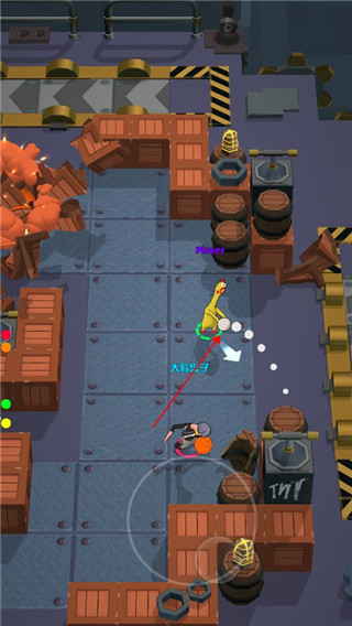 1.通过滑动屏幕控制角色移动,并通过投掷炸弹攻击对手。
