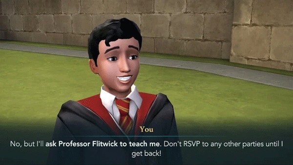 11、下课后,你将和胡奇夫人谈论海格的生日聚会。她会很好奇你为什么要她参加。你可以用三种不同的方式回答。虽然每个选项都会产生相同的结果,但选择第一个选项将获得10个知识点和5个房屋点,因此建议您选择该选项。