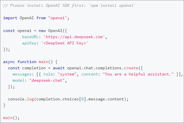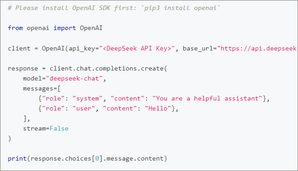 在创建 API key 之后,你可以使用以下样例脚本的来访问 DeepSeek API。样例为非流式输出,您可以将 stream 设置为 true 来使用流式输出。