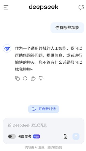 1. 问答互动:用户可以与DeepSeek进行对话,提出各种问题,获取详细的解答。