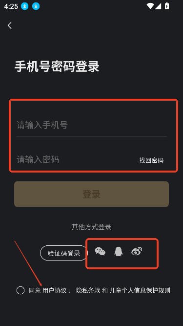 支持手机号,微信qq,账号密码登录,任意选择一种