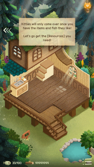 猫咪密林是一个猫奴世界,不同种类的猫猫聚集在一起,玩家可以和他们体验假日的悠闲;玩家在游戏中还可以前往池塘去进行钓鱼玩法,可以使用这些钓起来的小鱼来招待来到此处游玩的小猫;在游戏中提高了自己和猫咪之间的关系之后,还会获得小猫赠予的各类礼物和物品,这些物品可以让玩家装饰或者升级自己的猫咪小屋;游戏主要就是一款模拟养成类的游戏,玩家通过不断地建设自己的小屋来增加自己能够遇到的猫咪的种类和个数,不断地丰富自己的游戏体验。