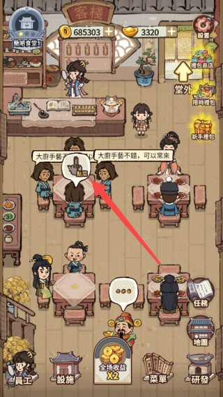 4、个性化经营:玩家可以根据自己的喜好和策略来经营客栈,比如研发新菜谱、提供优惠的住宿价格等,以吸引和留住顾客。这种个性化的经营方式,让玩家能够充分展现自己的经营才华。