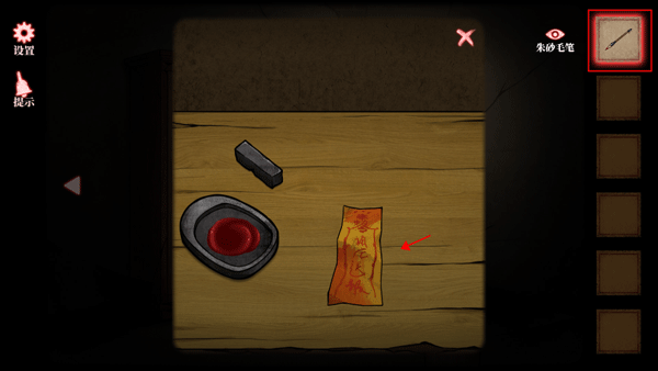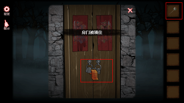 2、在下山的路上遇到了一个破房子,房门被锁住,点击簪字,打开锁获取符纸;