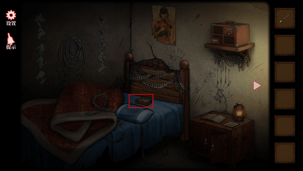9、在解锁储物柜中的盒子之前,先在卧室里找寻一番,点击枕头,你会一个盒子,盒子上面印有蝎子;