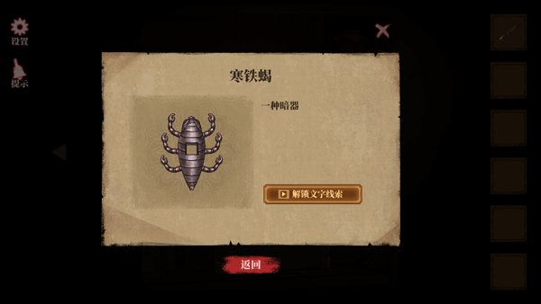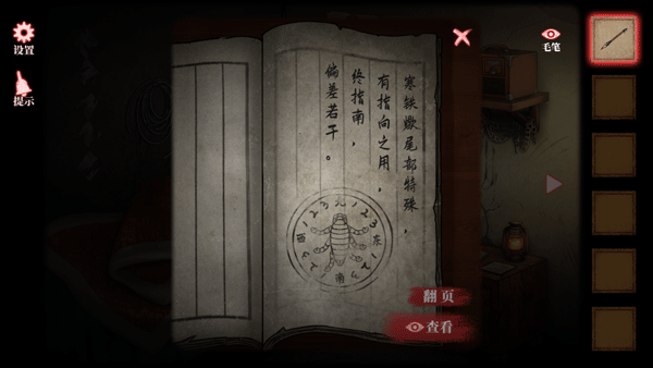 12、然后根据床头桌子上的书来点击蝎子的脚,不同数字对应点几下屏幕,将盒子打开获取钥匙;