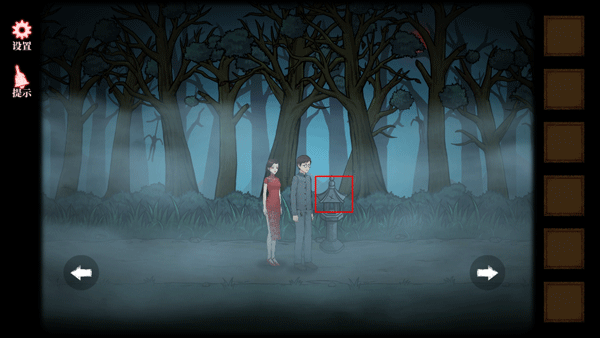 14、走出房间,玩家在下山的过程中遇到了鬼打墙,按照剧情在石灯上做个标记;
