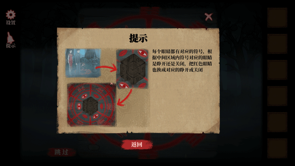 15、只要根据中间区域内符号对应的眼睛来将红色眼睛做出睁开或关闭的操作,即可获取一一种精致的装饰物;