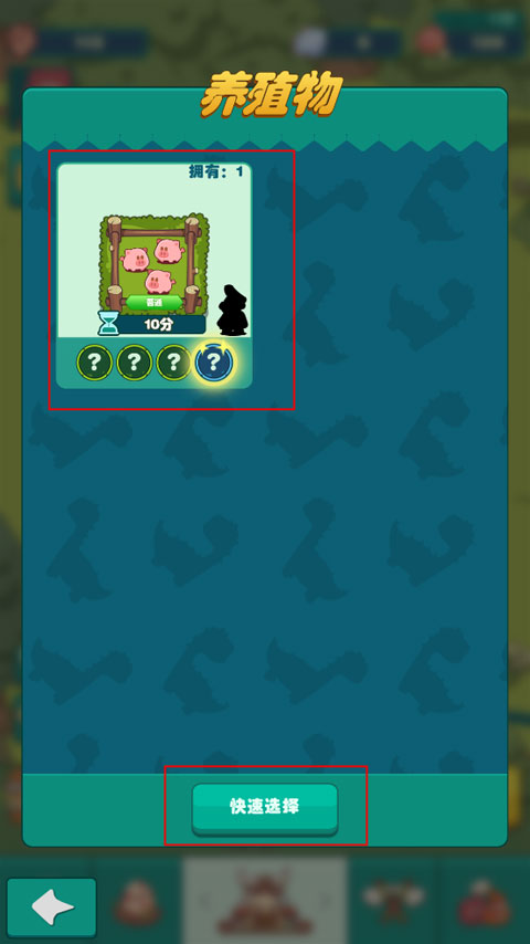 (2)在这里快速选择你想要养殖的动物,选择好之后返回到主页面。
